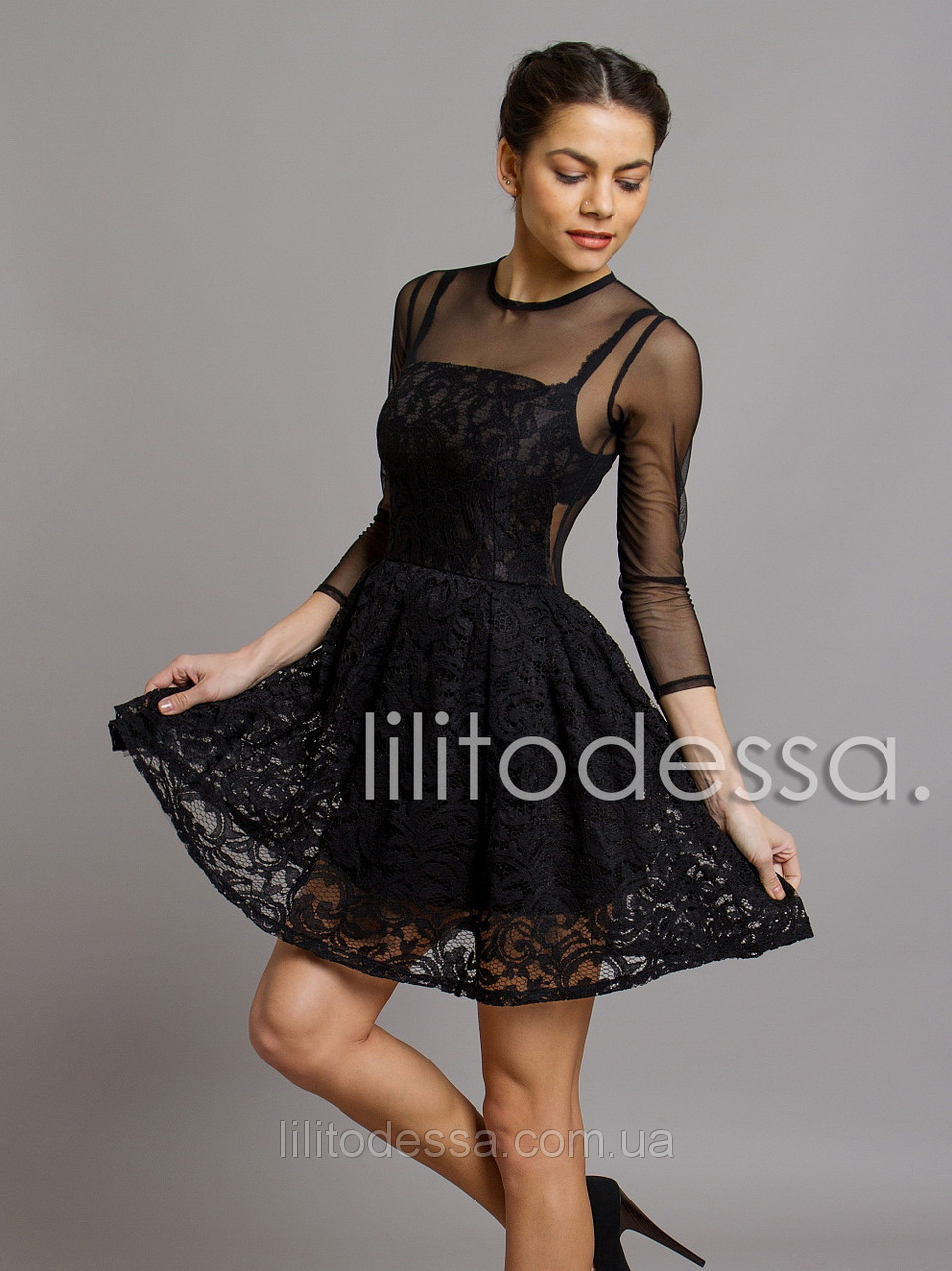 Ткань - гипюр/сетка. Длина — ок. 85 см., Рукав - ок. 48 см.;