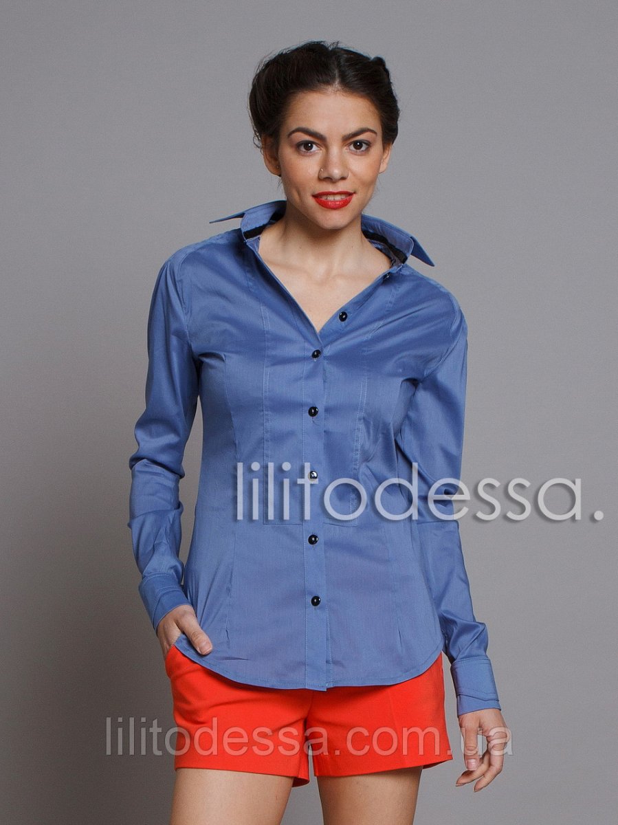 Блуза в деловом стиле с прострочкой на плечах и комбинированным манжетом. Ткань - каттон, состав - хлопок/полиестер. Длина - ок. 63см.,Длина рукава - ок. 61см.