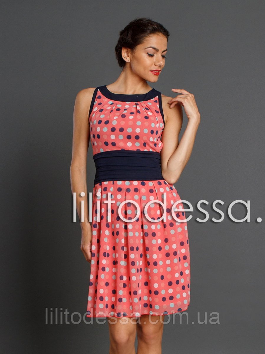 Платье из лёгкого полупрозрачного шифона, юбка на подкладке, сбоку потайная молния. Длина — ок.91см.