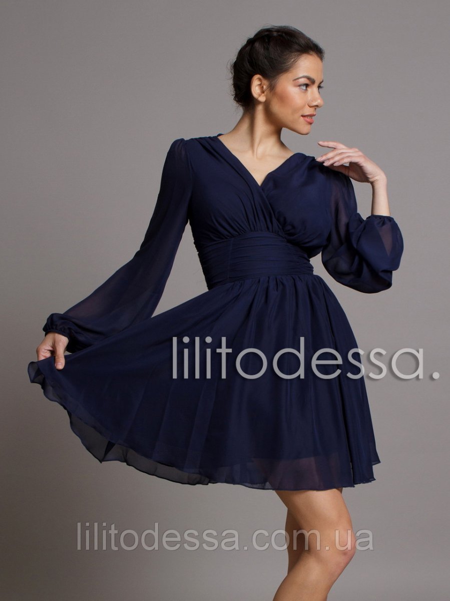 Коктейльное платье с открытой спиной, из двойного мультишифона. Сзади потайная молния. Длина — ок. 86см.; Рукав - ок. 61см.;