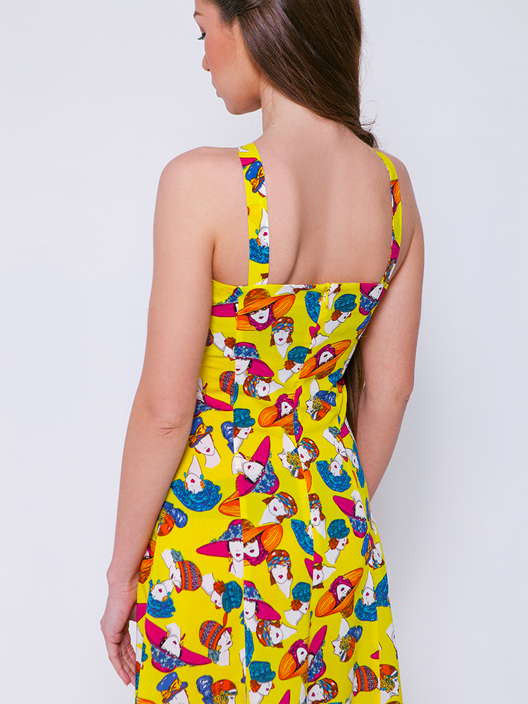 Лёгкий сарафан из лёгкой полупрозрачной ткани. Застёжка-молния расположена по среднему шву спины. Платье без подкладки.
