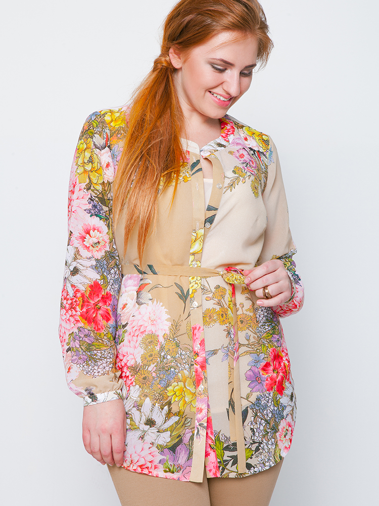 Блуза - туника из принтованого шифона, нижний слой "майка" однотонная в области талии разрезы для пояса. Стильная, прикрывает линию бёдер, легко комбинируется с лосинами и юбками.