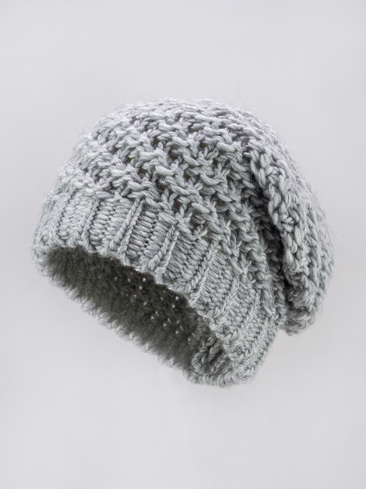 Берет объёмной крупной вязки.