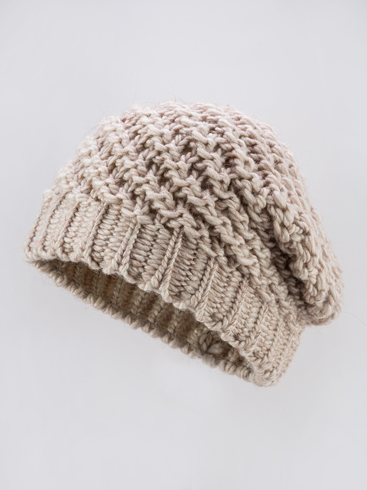 Берет объёмной крупной вязки.