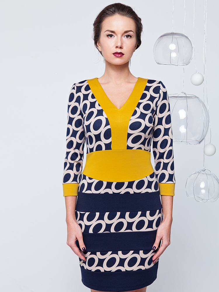 Разрезное платье из трикотажа. Монохромность основы и яркий акцент лифа и пояса выгодно подчекнут фигуру. Легко дополняется аксессуарами для удобства по заднему шву спины расположена застежка-молния.