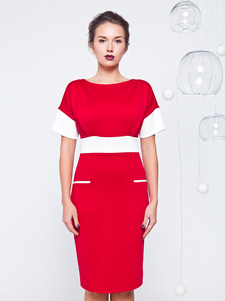 Платье из джерси с удобными функциональными карманами. Крой рукава - реглан. За счет драпировки, лиф достаточно свободен. Юбка облегающего силуэта. Для удобства в среднем шве спины расположена застежка-молния.
