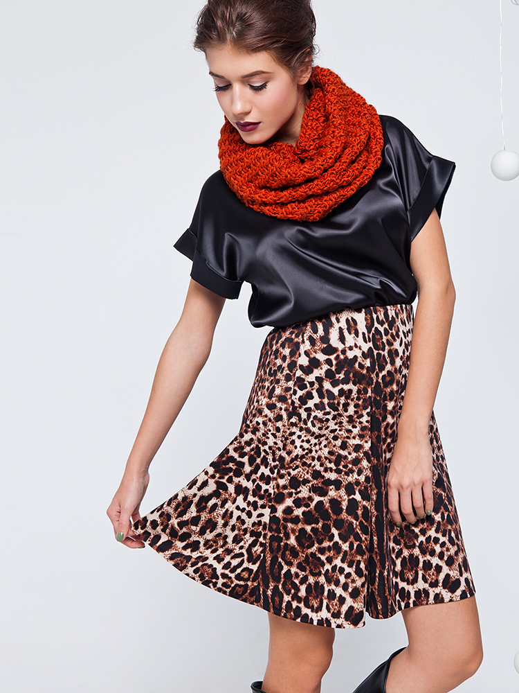 Юбка из принтованого трикотажа, расклешенная к низу, застежка-молния предусмотрена для удобства надевания. Пояс посажен на плотную резинку. Благодаря трендовым расцветкам юбка станет украшением любого гардероба.