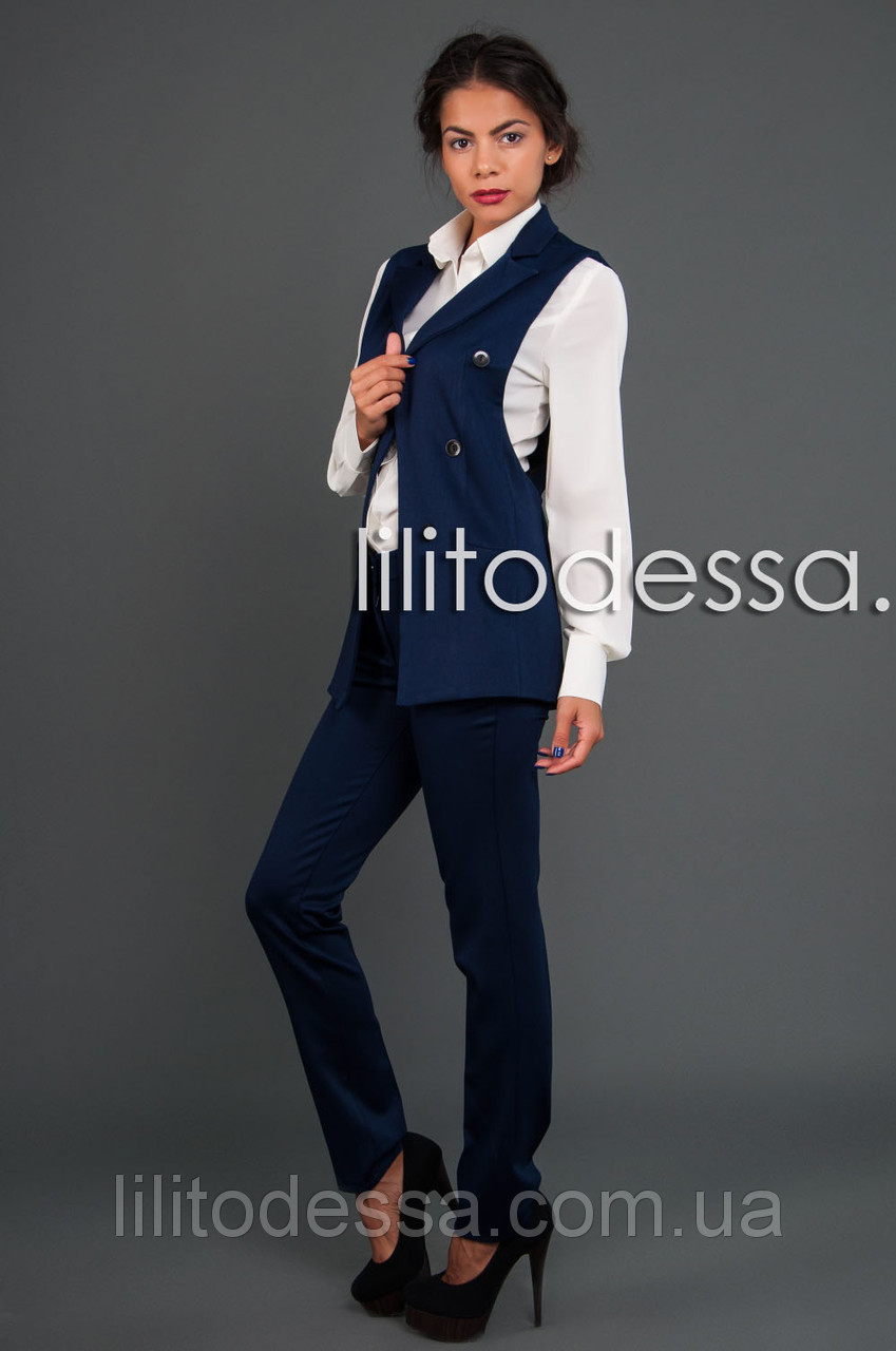 Жилет свободный на подкладке, не застёгивается. Длина - ок. 68см.;