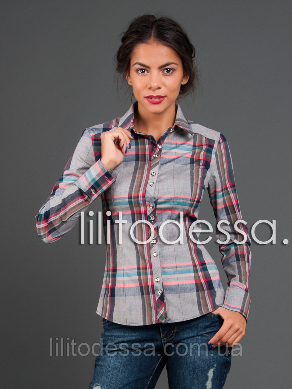 Классическая блуза в клетку, слегка приталена, длинный рукав можно подстегнуть на шлейку. Ткань - коттон, состав - хлопок/полиэстер (стрейч), сезон осень-весна. Производство - Украина. Длина - ок. 59см., Рукав - ок. 60см.;