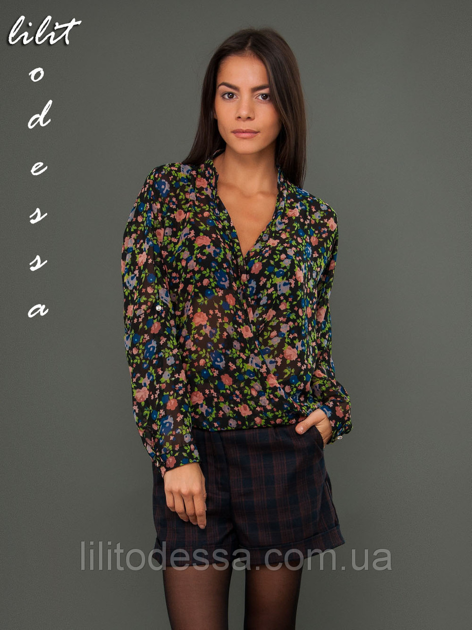 Стильная, свободная блуза с длинным рукавом и удлинённой спинкой. Рукав можно подстегнуть на шлейку. Ткань - шифон, состав - полиестер. Длина - ок. 50 см. / 68см.; Длина рукава - ок. 58 см., Производство - Украина.