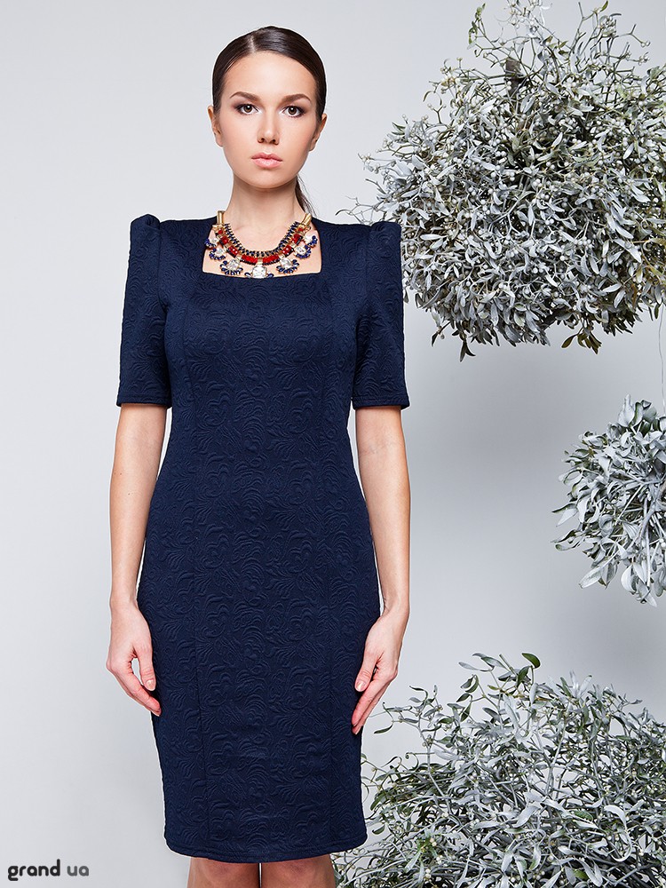 Платье из объемного мягкого трикотажа плотно облягающее фигуру. Квадратный вырез горловины позволяет комбинировать его с различными аксессуарами, отлично смотрится с жакетами.