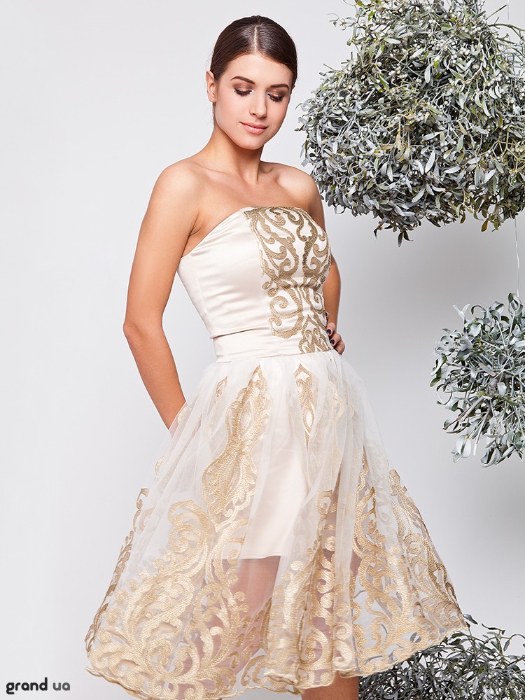 Платье из атласа с отделкой из венецианской сетки, корсетного фасона, застежка-молния находится по среднему шву спины. Изделие на подкладке. Легко комбинируется с жакетами, болеро и аксессуарами.