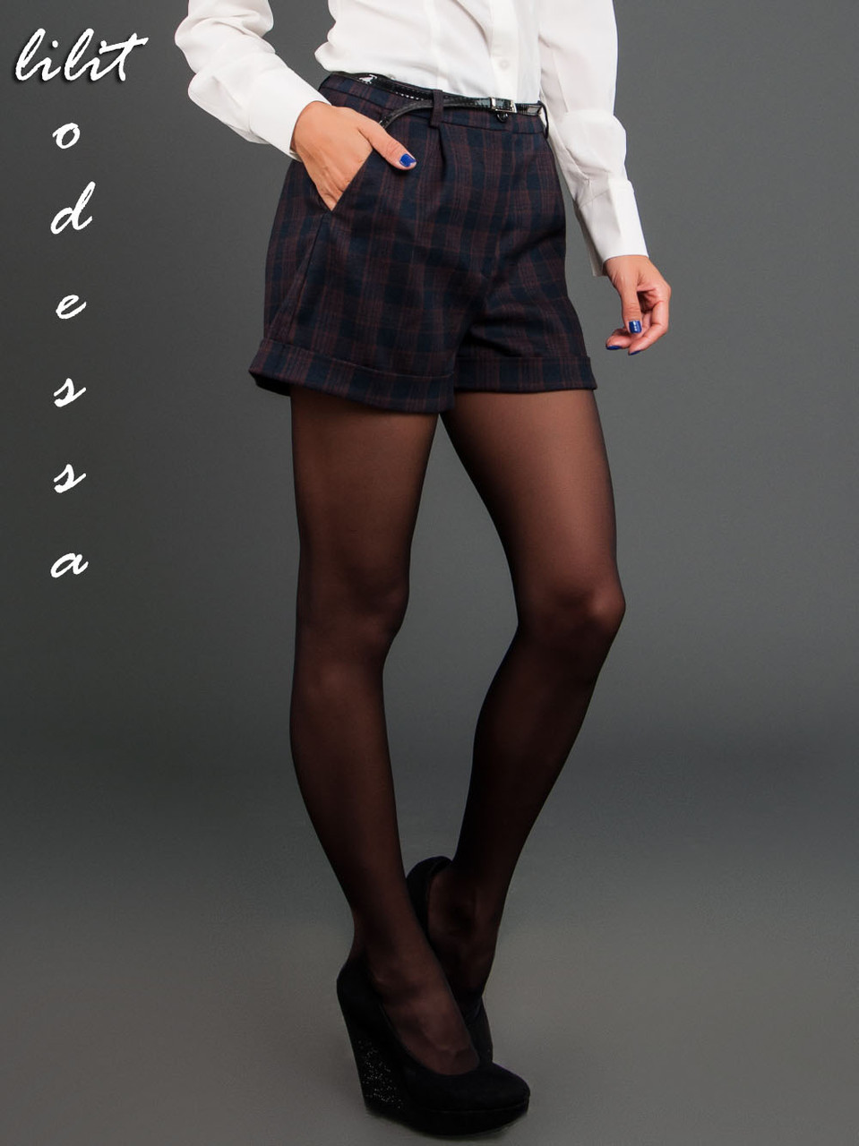 Свободные шорты с высокой посадкой, косые карманы по бокам. Ткань - байка, состав - шерсть (стрейч), сезон осеь-весна. Производство - Украина. Длина - ок. 35-37см.;