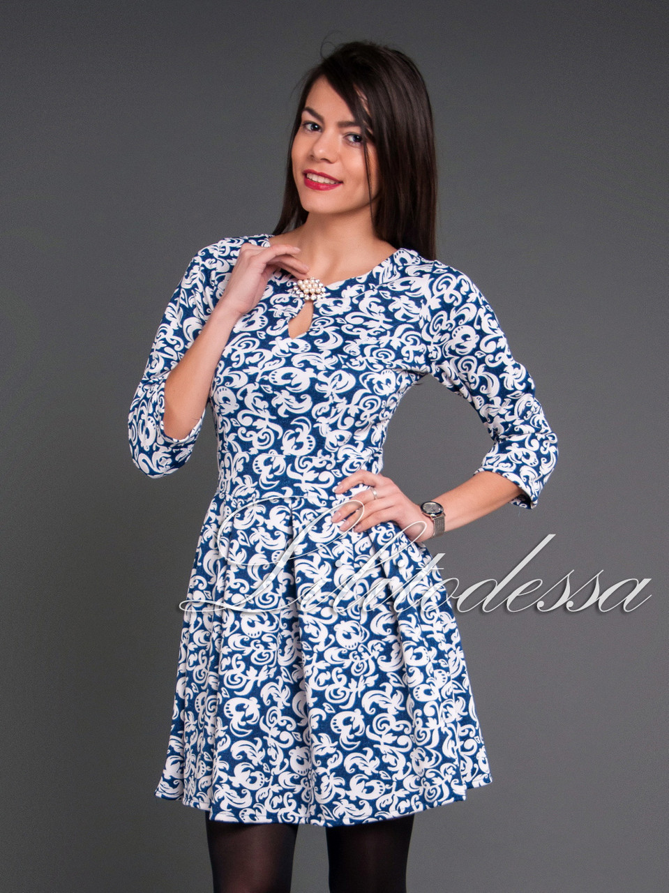 Нарядное платье с брошью. Ткань - кримплен, состав - полиэстер (стрейч), сезон демисезон. Длина - ок. 80см., Длина до талии - ок. 36см., Рукав - 3/4, Производство - Украина.