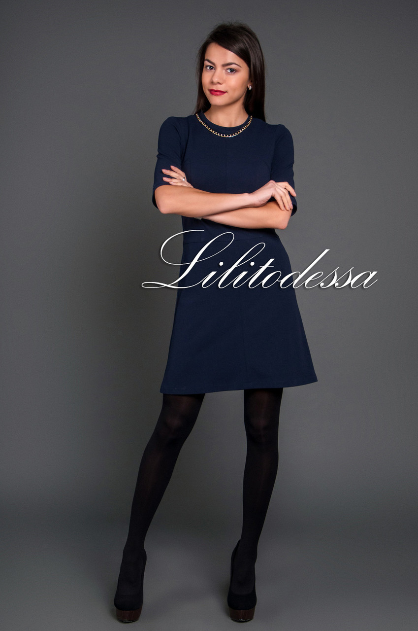 Украшение - цепь, Ткань - креп, состав - вискоза/полиэстер (стрейч), сезон демисезон. Длина - ок. 87см., Рукав - 3/4, Производство - Украина.