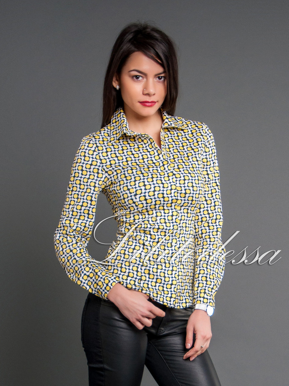 Блуза с классическим воротником и закрытой линией пуговиц, слегка приталена, рукав можно подстегнуть на шлейку. Ткань - коттон, состав - хлопок/полиэстер (стрейч), сезон осень-весна. Производство - Украина. Длина - ок. 60см., Рукав - ок. 58см.;