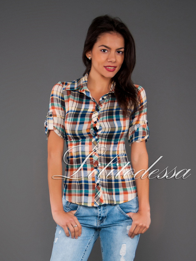 Лёгкая блуза с классическим воротником. Рукав можно подстегнуть на шлейку. Ткань - лёгкий коттон, сезон-лето. Длина - ок.58см., Рукав - 3/4, Производство - Украина;