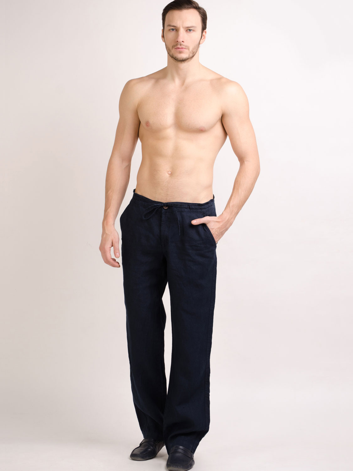 Мужские льняные брюки свободного прямого кроя из 100% белорусского льна высшего качества. Размерный ряд до р.62. Брюки в наличие в 4 цветах. Боковые прорезные карманы-хулиганы.
