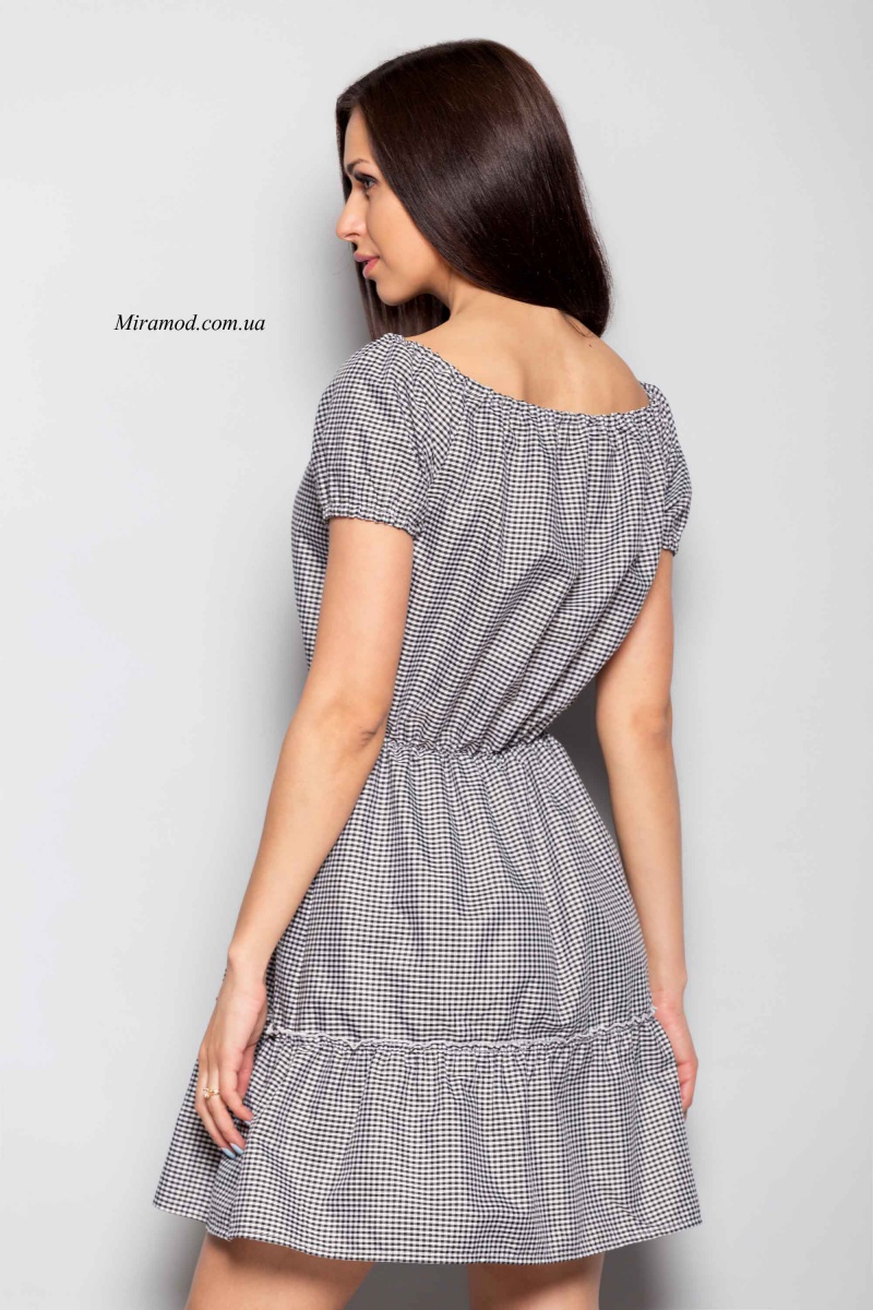 Романтичное платье БРИДЖИТ с расклешенной юбкой длиной выше линии колен, выполнено из качественной хлопковой ткани. Широкая горловина-лодочка, линия талии и короткий рукав на резинке. Подол платья украшен широкой оборкой.