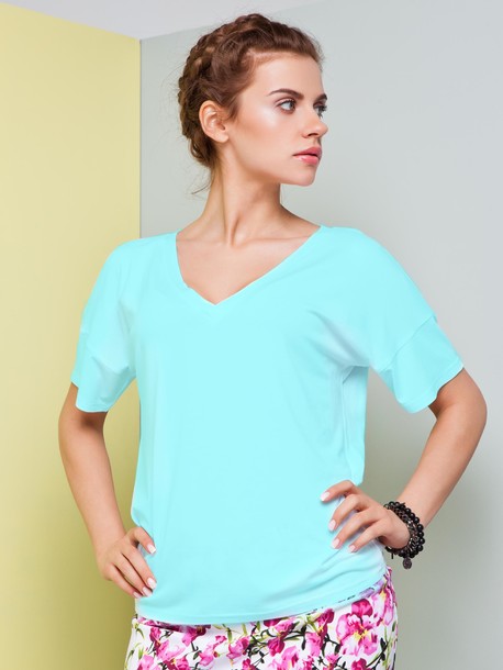 Футболка из натурального материала, глубокий V-образный выкат горловины, линия плеча спущена, силуэт свободный. Легко комбинируется с различными предметами гардероба.