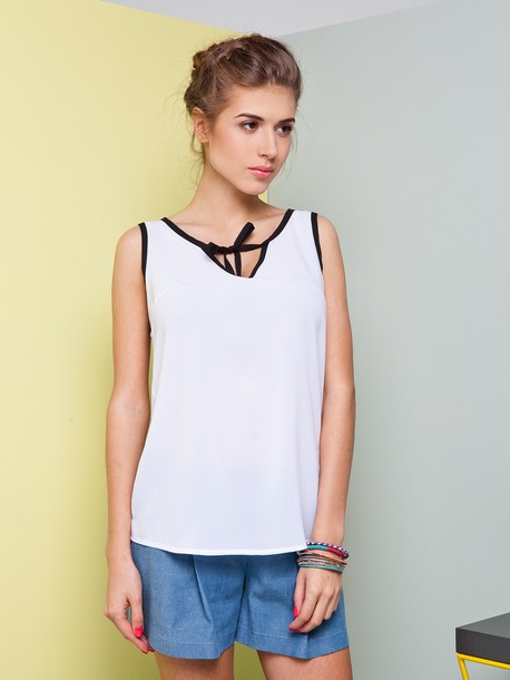 Однотонная майка из крепа с контрастной отделкой, свободного силуэта. Легко комбинируется с различными предметами гардероба. Легко поможет Вам создать образ в различном стиле.