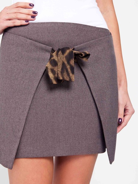 Мини юбка из костюмной ткани, оригинального фасона, отделка из принтованного шифона придаёт изюминку данной модели.