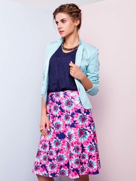 Юбка расклешенная, талия фиксируется плотной широкой резинкой. Хорошая растяжимость изделия. Трендовая расцветка позволяет комбинировать изделие с различными блузами, футболками и майками.