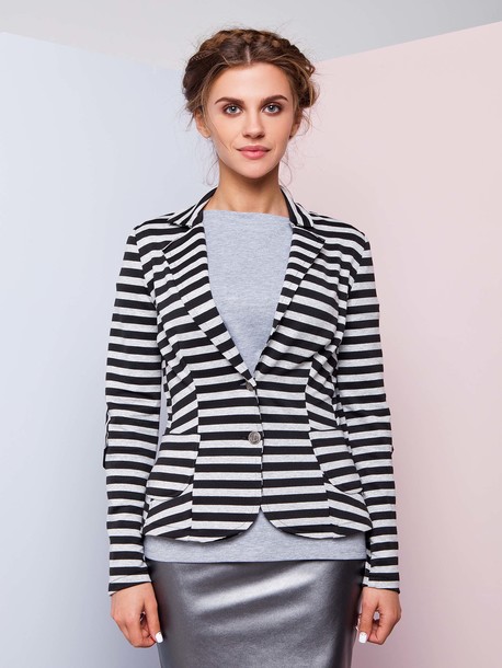 Легкий стильный жакет без подкладки из трикотажа "двунитки". Края изделия в срез - не обработаны. Функциональные карманы, декоративные накладки на локтях изделия.