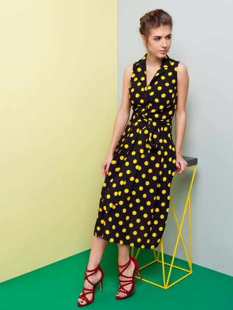 Элегантное стильное платье из натурального материала, юбка заложена глубокими складками, пояс делает образ завершенным. Длина изделия особо актуальна в этом сезоне.