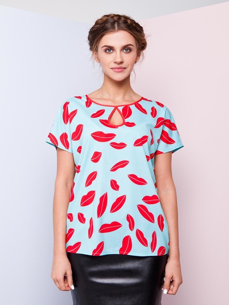 Блуза из легкого шелка с современным принтом, свободного фасона. Горловина украшена вырезом в форме капли, рукав - спущенная пройма.
