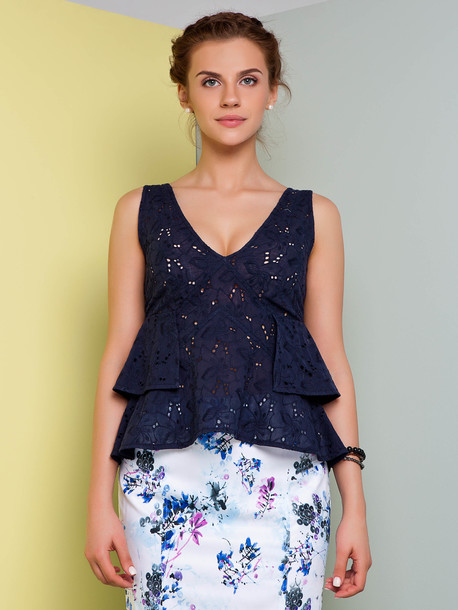 Блуза из шитья (прошвы), натуральный коттон, по спинке изделие завязывается на бант. Линия банта прикрывает линию белья. Легко комбинируется с брюками, юбками, шортами.