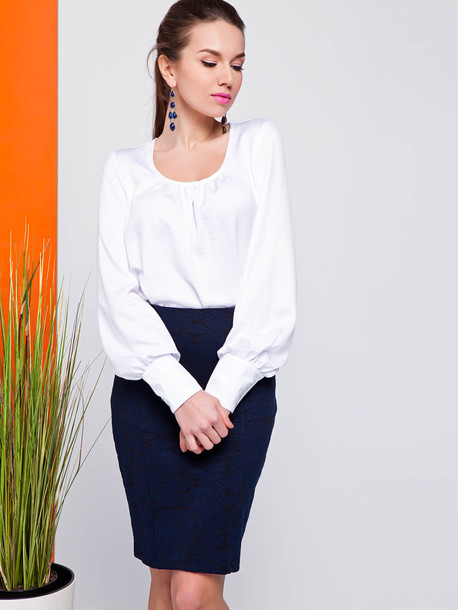 Блуза свободного покроя с длинным рукавом, манжет фиксируется пугавицами. Легко комбинируется с брюками, юбками, подходит под платья-сарафаны.