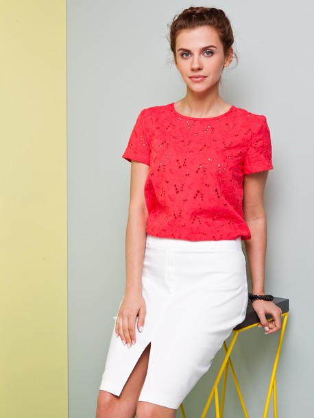 Блуза из натурального коттона (прошва), по горловине застежка-пуговка. Удобна и практична, легко комбинируется с различными изделиями.