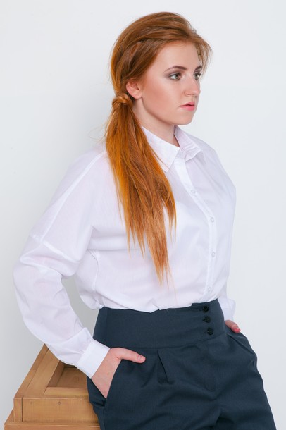 Блуза - рубашка с оригинальным кроем рукава, заниженый - отрезной реглан, манжет и планка застёгивается на пуговицы. Удачно комбинируется как с юбками, так и с брюками.