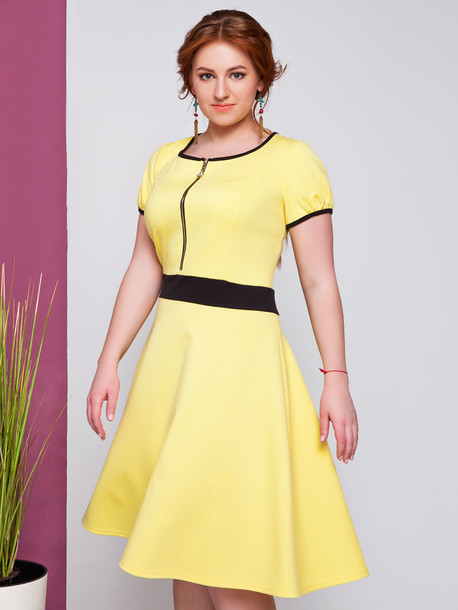 Платье из трикотажа джерси с контрастной отделкой. Застежка молния функциональна, изделие подчеркивает талию. Легко комбинируется с аксессуарами, жакетами и кардиганами.