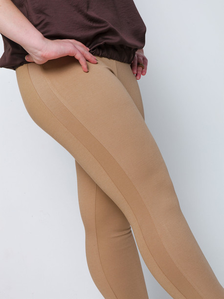 Плотные, хорошо - тянущиеся лосины облегающего силуэта. Пояс изделия выполнен из декоративной резинки, бок изделия декорирован ломпасом 3 см, что придаёт длину и стройность ноге.