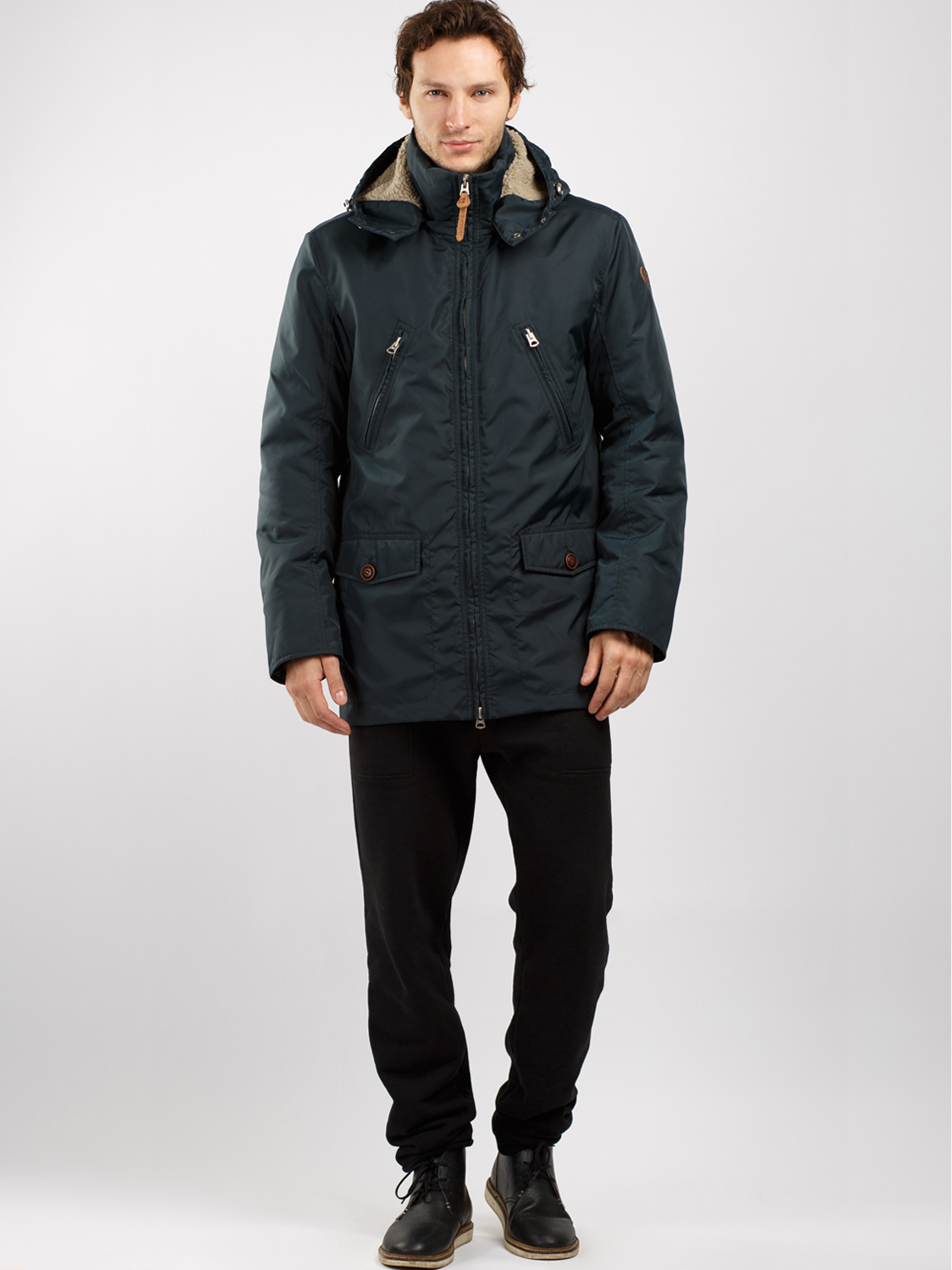 2 нагрудных косых прорезных кармана на молнии. внизу 2 прорезных кармана с клапаном и застежкой на пуговицу. 1 внутренний карман на молнии.