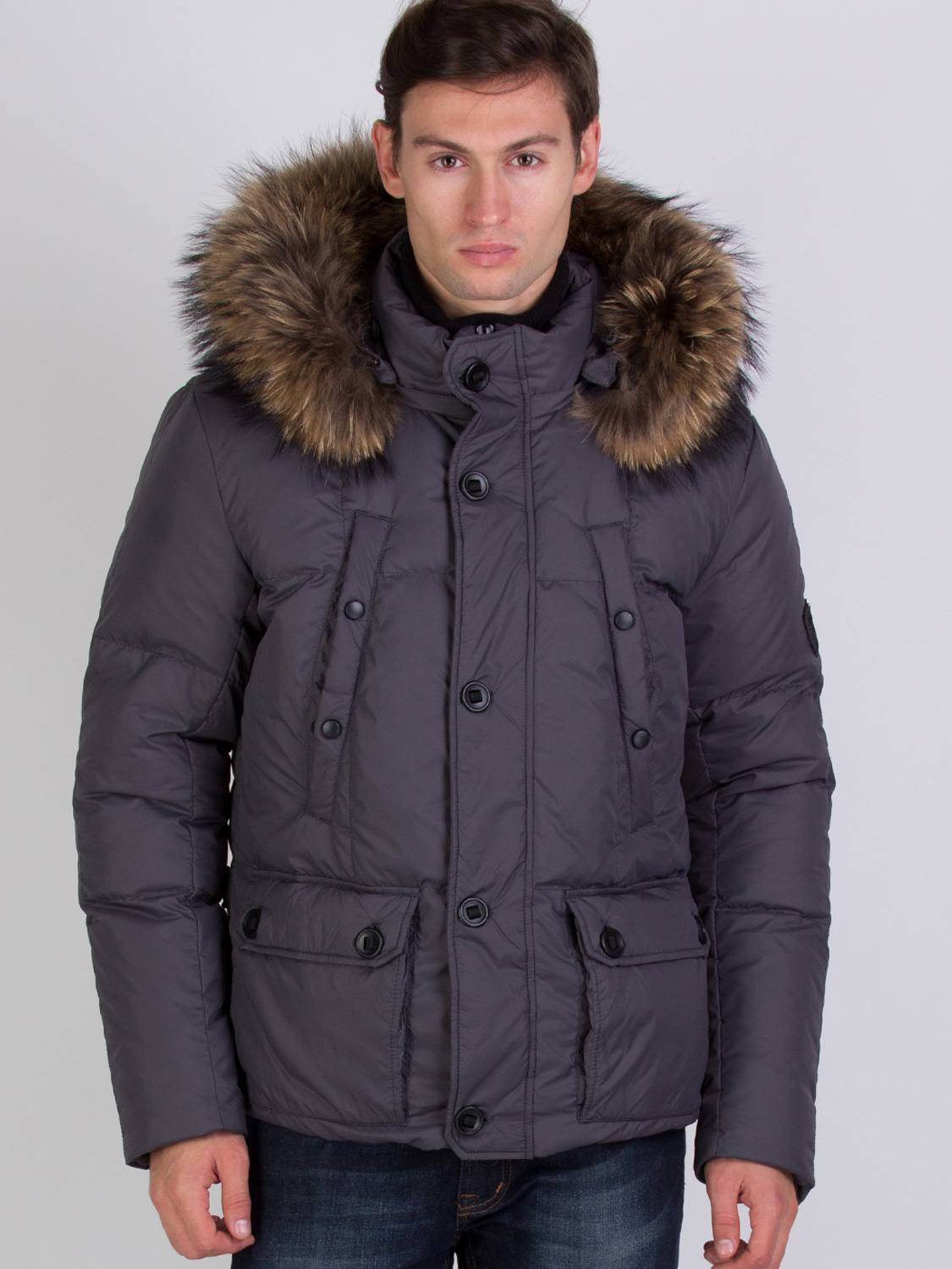Капюшон пуховой, отстёгивающийся. Отстёгивающийся мех "FINN RACCOON" (пр-во ФИНЛЯНДИЯ)(возможен вариант без меха,уточнять у менеджера).