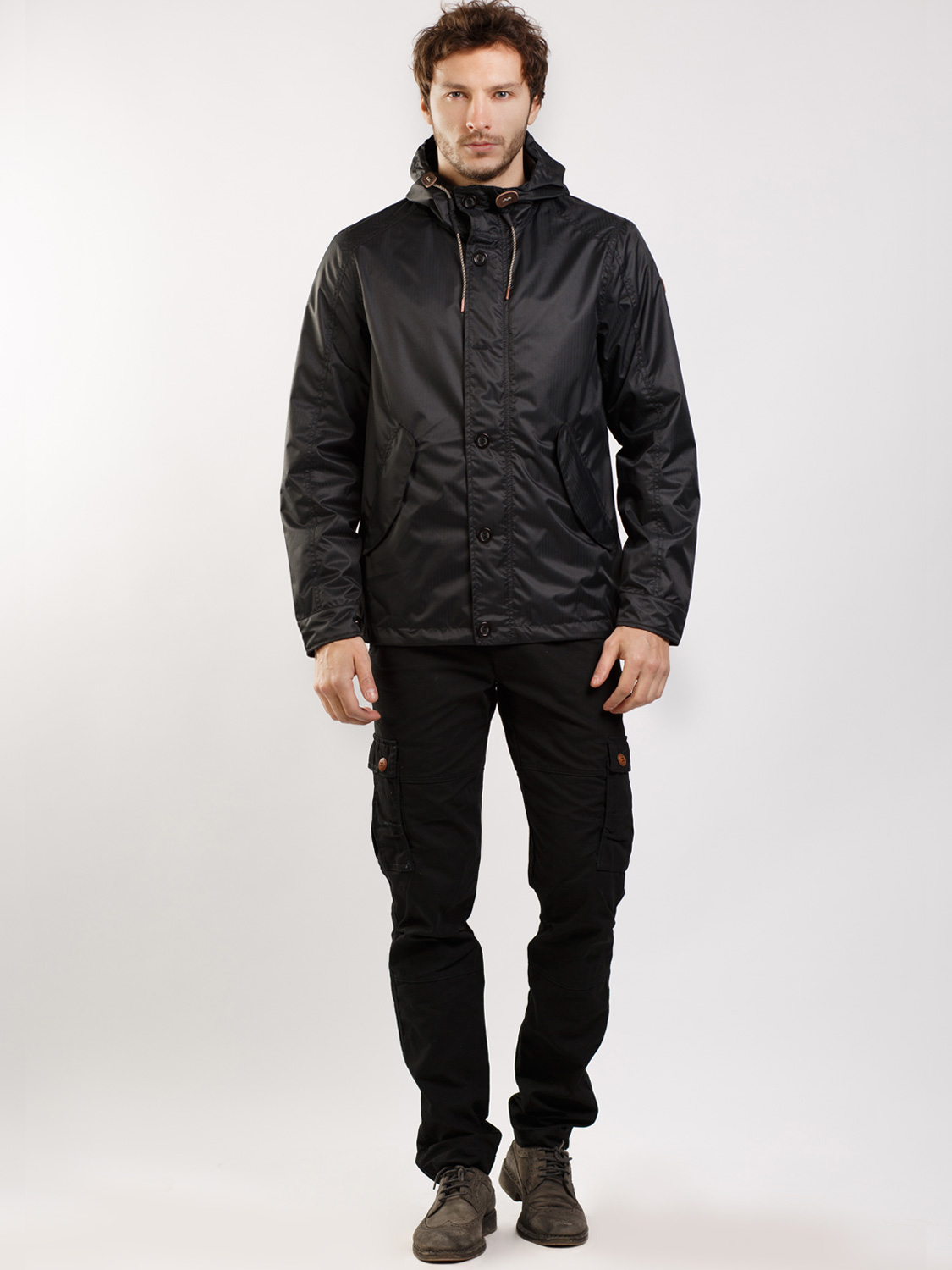 Модель укороченная. Центральная застежка - молния с ветрозащитной планкой на пуговицах. Капюшон с затяжками, на подкладке, не отстегивается.