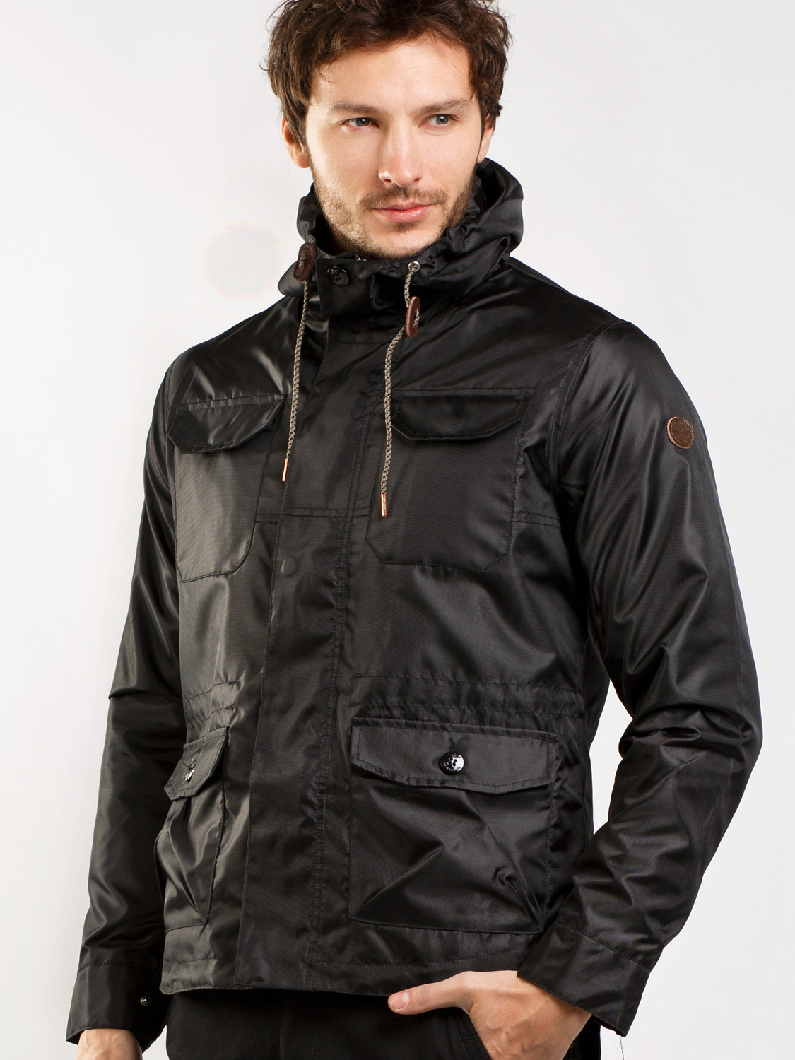 Центральная застежка - молния с ветрозащитной планкой на скрытых кнопках. Капюшон с затяжками, на подкладке, не отстегивается.