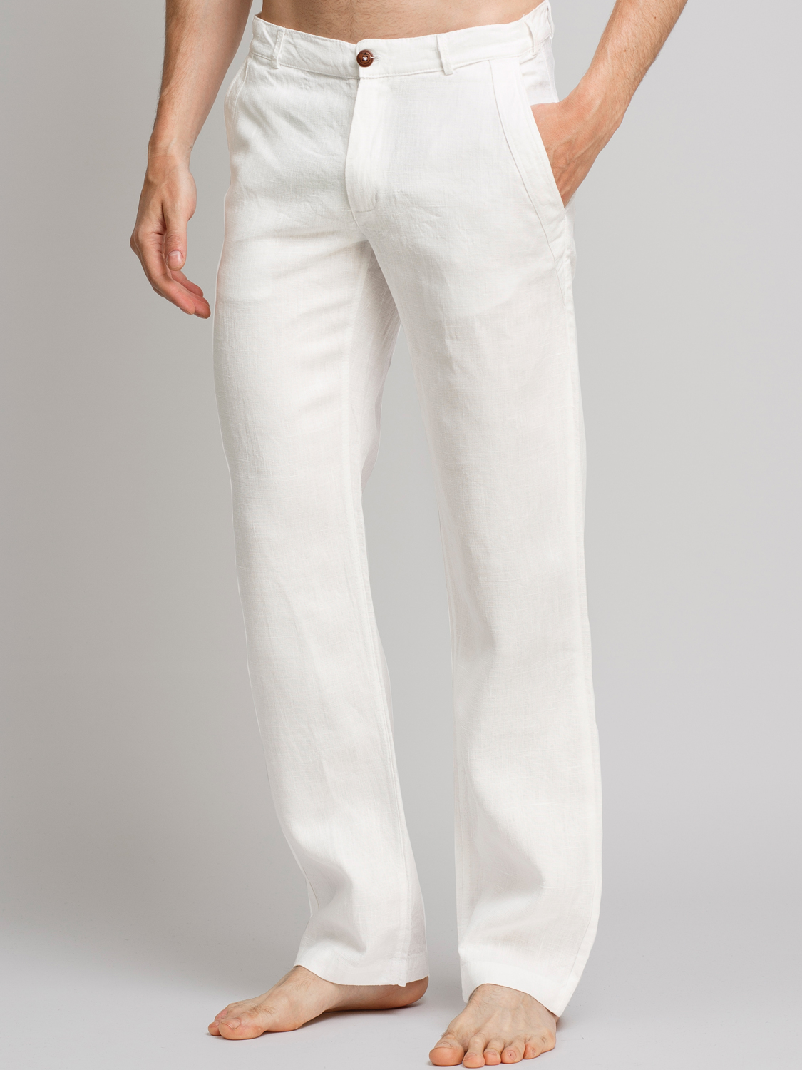 Мужские льняные брюки классического прямого кроя. Размерный ряд до р.62. Боковые прорезные карманы-хулиганы с декоративной отстрочкой.