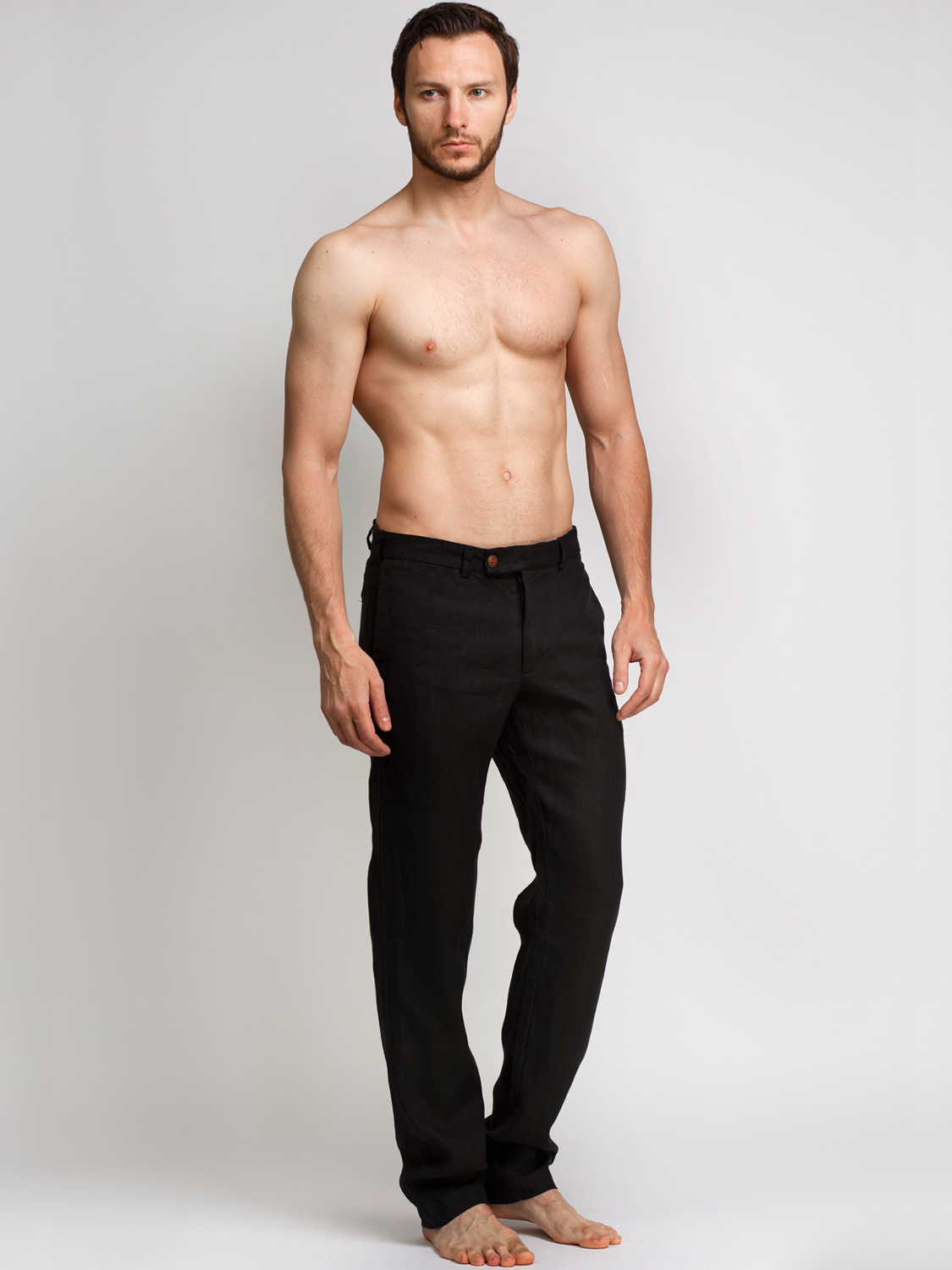 Мужские льняные брюки классического кроя слегка зауженные от колена к низу. В сезоне Лето 2016 представлены в 5 популярных цветах. Боковые прорезные карманы-хулиганы.