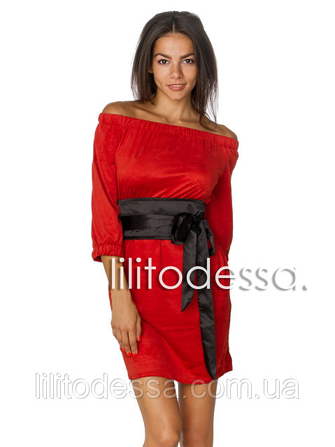 Платье с поясом. Мягкая, приятная ткань под замш. Пояс в комплекте. Длина — ок. 71см.